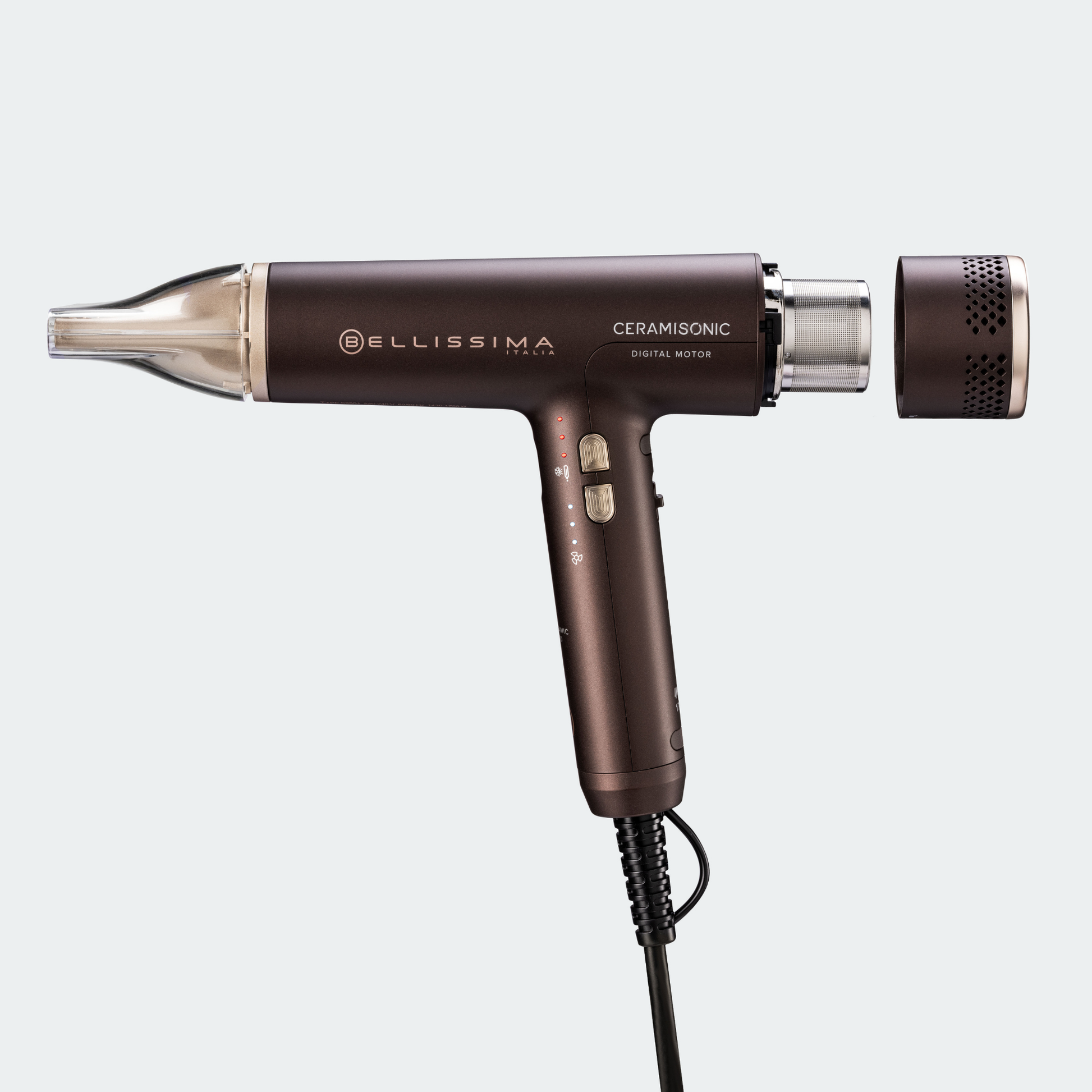Digitalmotor mit hoher Geschwindigkeit und Ion Ceramic Hi-Pro-Technologie für ultraschnelles Trocknen und definiertes Styling, das das Haar schont. Leicht, kompakt und leise.